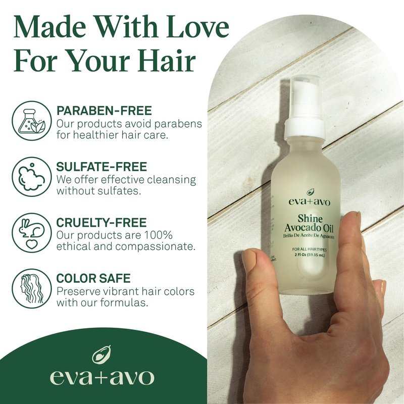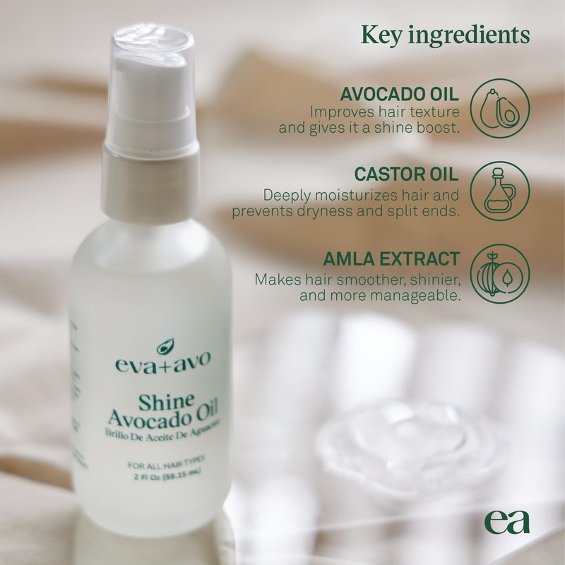 - NATURAL OIL BLEND: The eva+avo hair oil is a powerful blend of nourishing, nutrient-rich oils such as avocado and castor oil that replenish your hair with nutrients. This formula is also paraben-free, sulfate-free and color-safe.