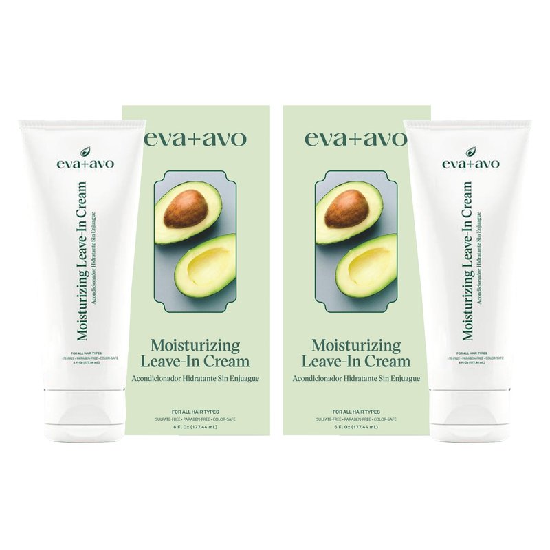 Eva + Avo Leave In Conditioner Cream – Hair Moisturizer Cream for All Hair Types – Paraben and Sulfate-Free Leave In Hair Conditioner – Hydrating Hair Treatment with Avocado and Rosemary - 2-Pack