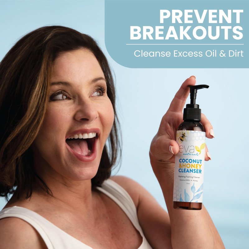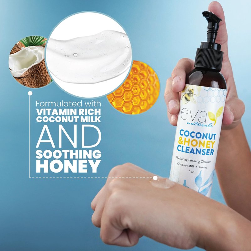 Eva Naturals Coconut & Honey Cleanser Hydrating Foaming Cleanser - Moisturizing, Non-Stripping Daily Acne Face Wash For All Skin Types - 6 Fl Oz