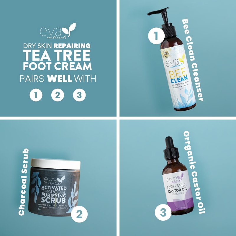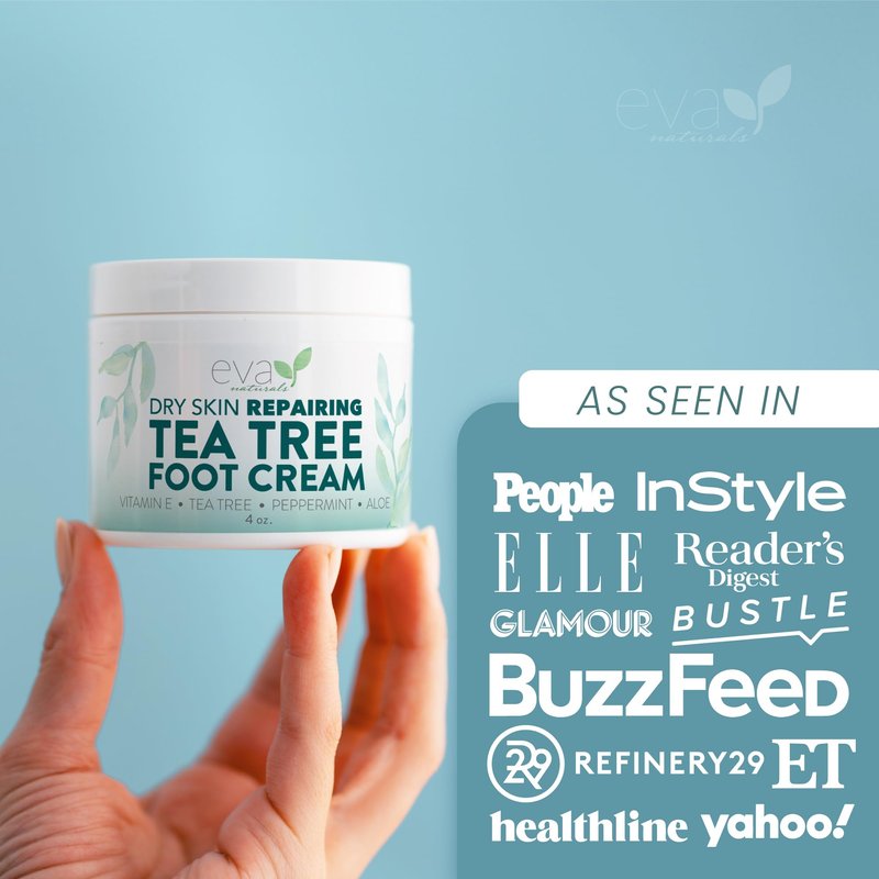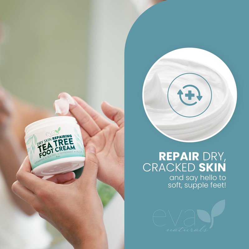 Eva Naturals Tea Tree Foot Cream - Foot Lotion with Peppermint, Menthol and Spearmint - Soothing Foot Cream Treatment for Dry Cracked Heels and Feet