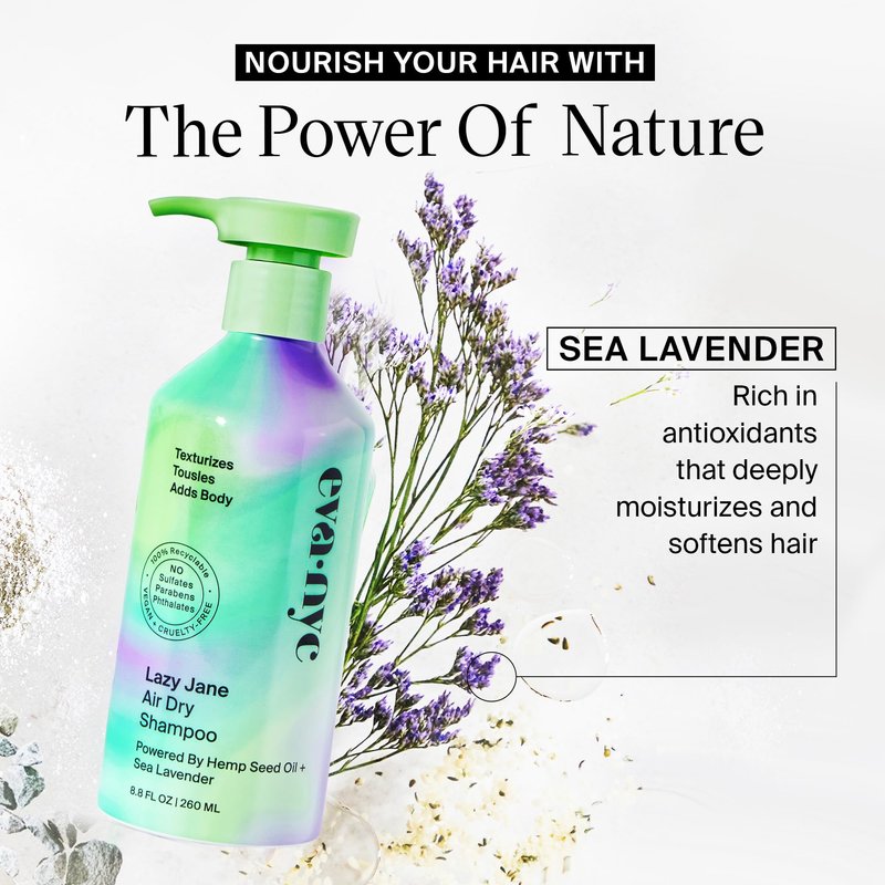 - For Effortlessly Air-Dried Hair - Enjoy a heat-free styling routine with our Lazy Jane Air Dry Shampoo. This Eva NYC product helps you get that air-dried perfection without the damage from a blow dryer or other heat styling products.