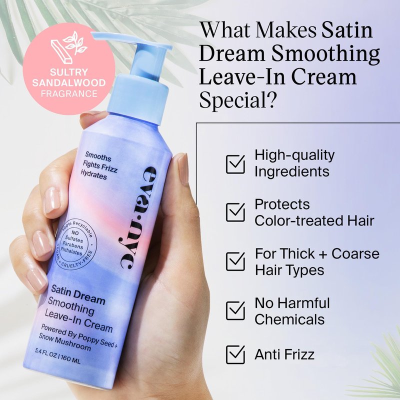 - Achieve Silky, Satin Smooth Hair - Give your hair a smooth, frizz-free style with our Eva NYC Satin Dream Leave-In Cream. This hair leave-in conditioner fights frizz and hydrates your locks. You know that feeling after showering and slipping into silky, clean sheets? That’s this—in leave-in form!
