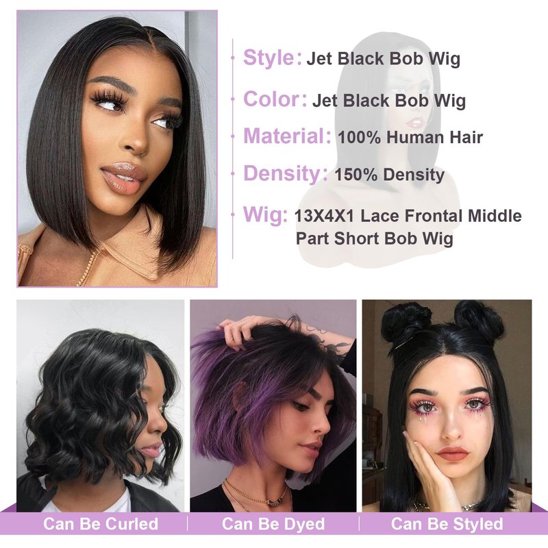 Bob Wig Human Hair Black Bob Wig 13x4 Front Lace Wig 12 Inch Middle Part Short Straight Bob Wig for your quick hairstyles.