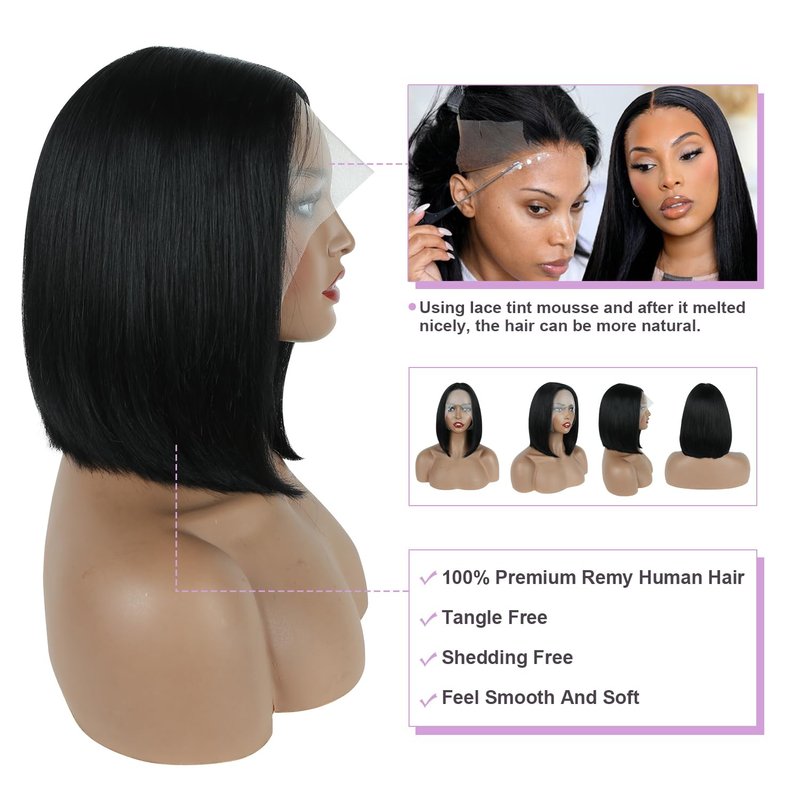 - Bob Wig Human Hair Texture:13x4x1 Closure Human Hair Wig, Pre Cut Invisible HD Lace, Blends Perfectly into Skin. Pre Pluked Bleached Knots,Pre Cut by the Special Technical Scissor to Make Sure the Edge is Stronger and Neater.