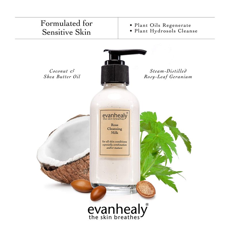 - SKINCARE FOR ALL — Rose Cleansing Milk is Ideal for use on all skin types, especially mature and combination skin. For extremely sensitive or damaged skin, our experts have developed the evanhealy Blue Lavender Cleansing Milk.