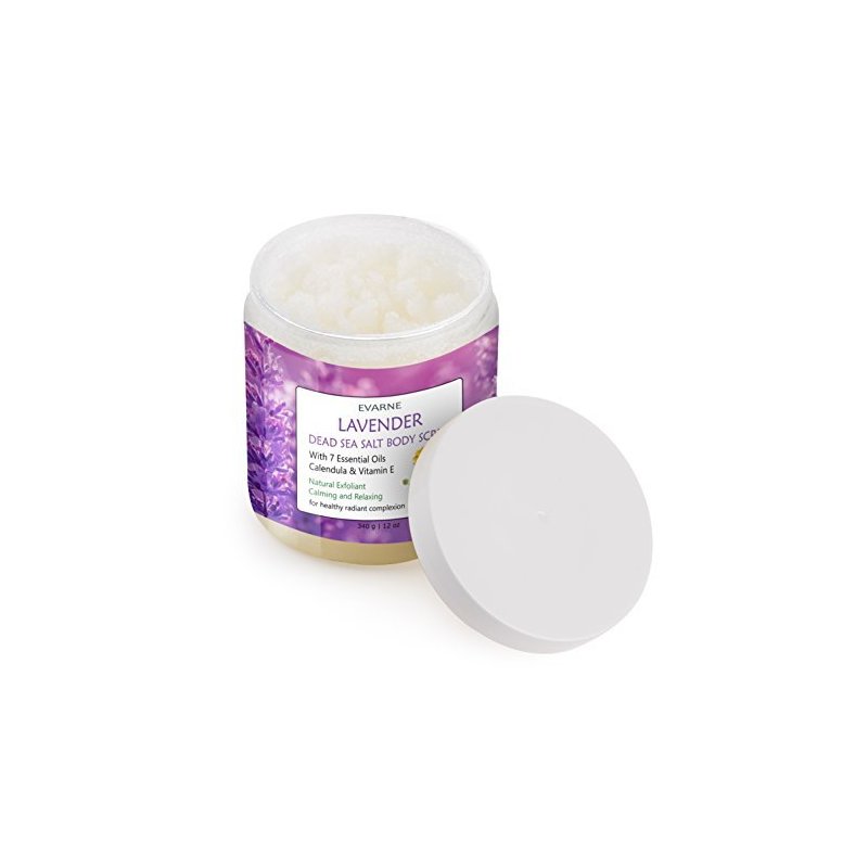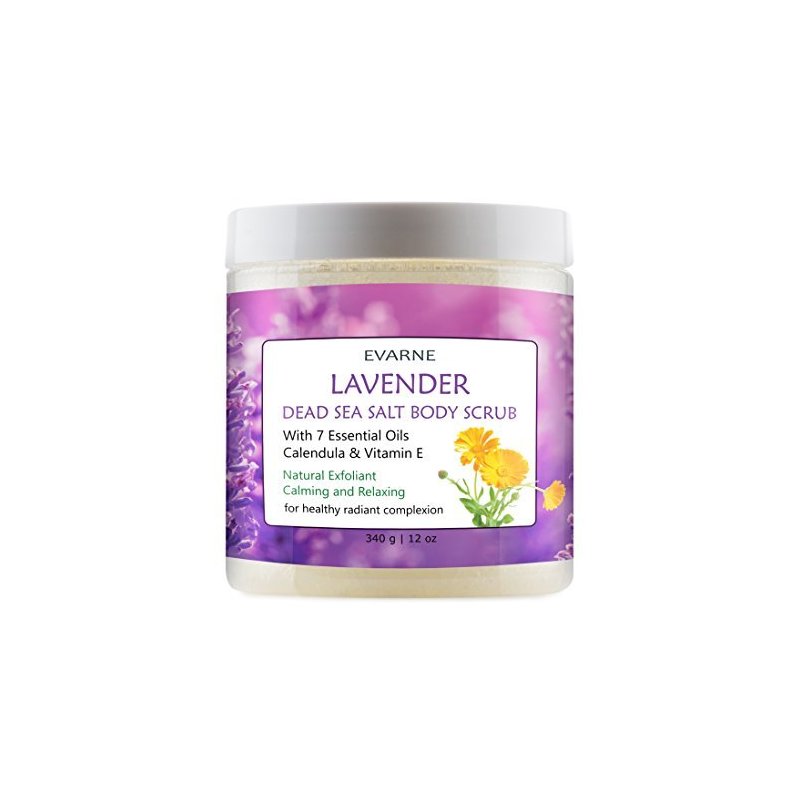 Evarne Lavender Dead Sea Salt Body Scrub with 7 Essential Oils Calendula and Vitamin E