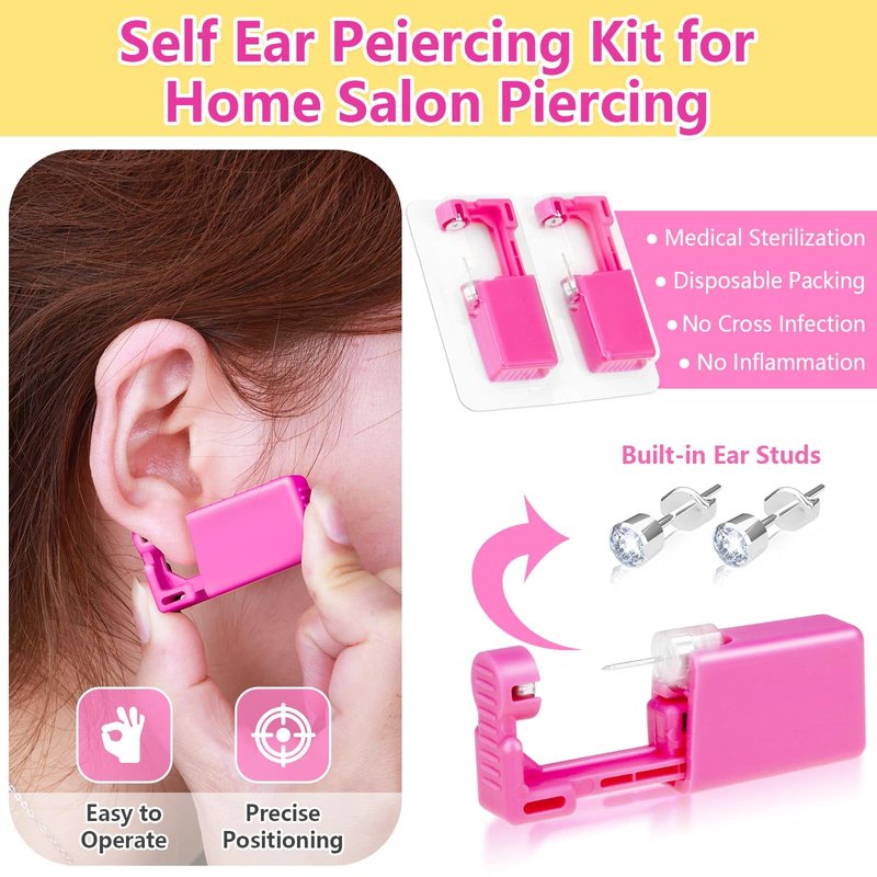 - 【Multi Functional Use】The home piercing kit can be used for first time users or professionals alike, suitable for beauty salon use , DIY practice at home. You can also share this self ear piercing kit with your friends and family members to enjoy a quick piercing