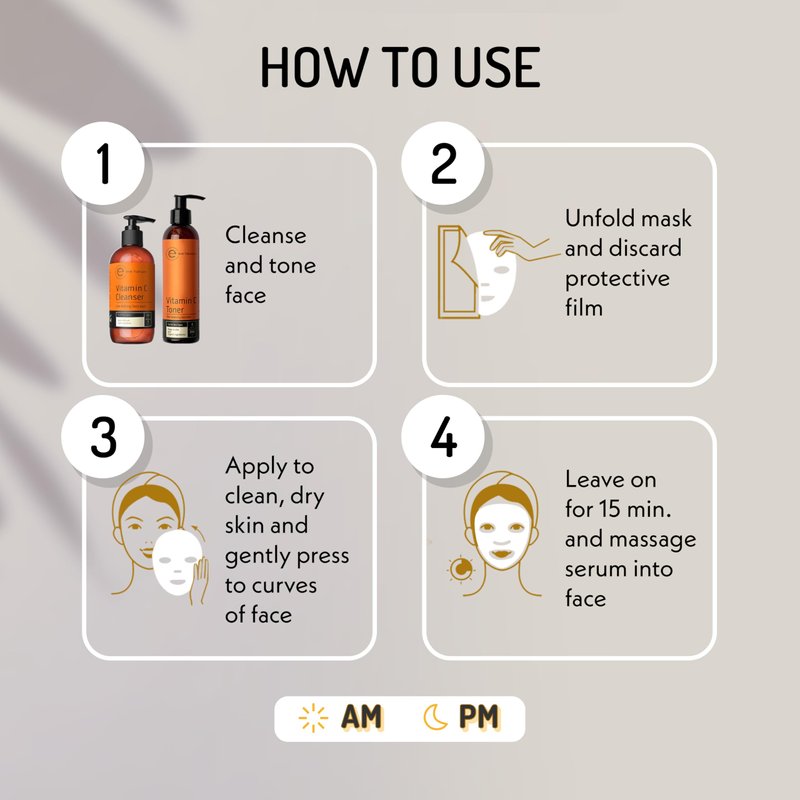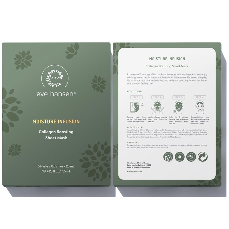 Moisture Infusion Mask: Revitalize your skin with our moisture-infusing face mask designed to refresh tired and dull skin. This moisturizing mask aims to improve skin firmness and hydration, promoting a plumper and more refreshed appearance. Enhanced Skin Appearance: This face sheet mask is formulated to address fine lines and wrinkles, helping to improve skin tone and clarity. It supports a smoother and tighter complexion. Natural Ingredients: Made with citrus, spinach, and blueberry extracts, this mask provides hydration and helps support skin repair. It is 100% vegan, cruelty-free, and free from sulfates, parabens, and phthalates. Cooling and Refreshing: Each use offers a cooling sensation that leaves your skin feeling soft and moisturized. Ideal for a quick skin boost, it helps enhance skin clarity and elasticity. Easy to Use: Remove the mask from the packet, peel away the film, and apply to a clean face. Relax for 15 minutes, then remove and gently press any remaining serum into your skin.