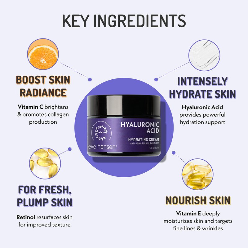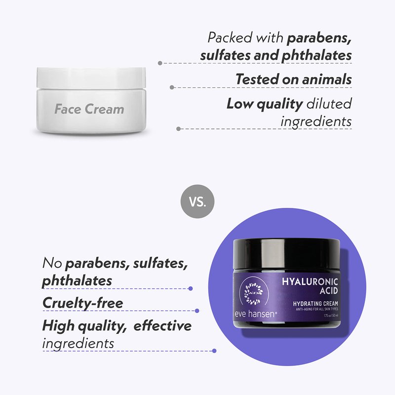 - Smooth and Glowing Skin - Moisturize and repair dry, damaged and flaky skin with hyaluronic acid face cream. Use as a natural moisturizer for face and anti wrinkle face cream with hyaluronic acid.