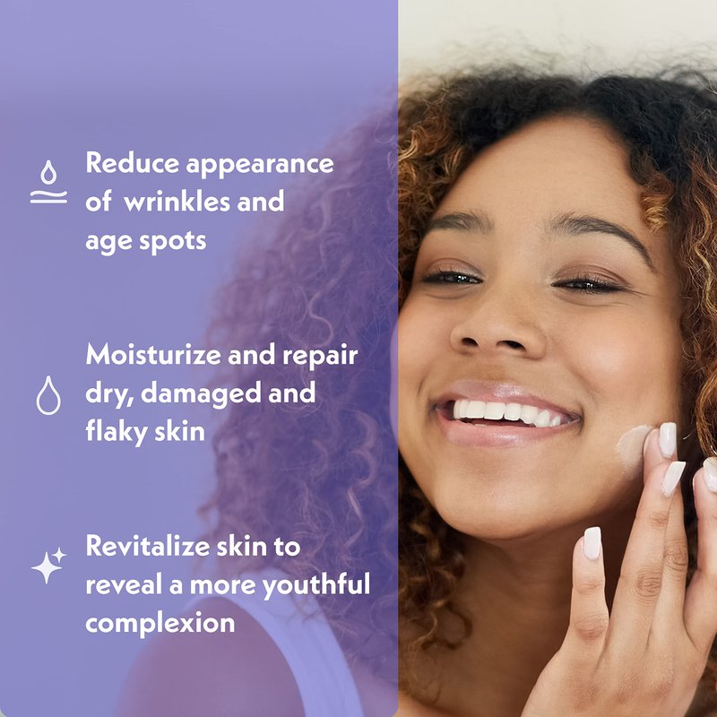 - Vitamin E helps revitalize skin and reduce the appearance of wrinkles, fine lines, dark spots and age spots