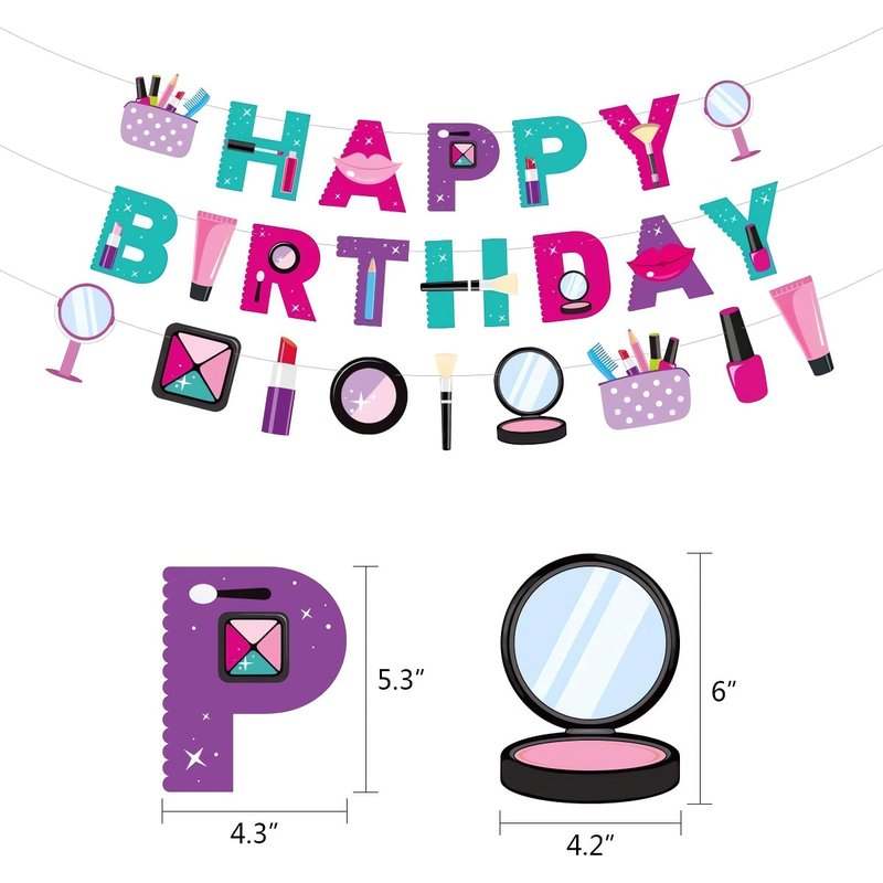 - 【Spa Birthday Party】You will get 1 set spa themed "HAPPY BIRTHDAY" banner with makeup pattern features. Can create a funny world of spa, making your party more exciting and eye-catching.