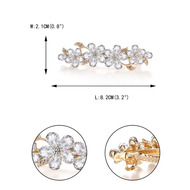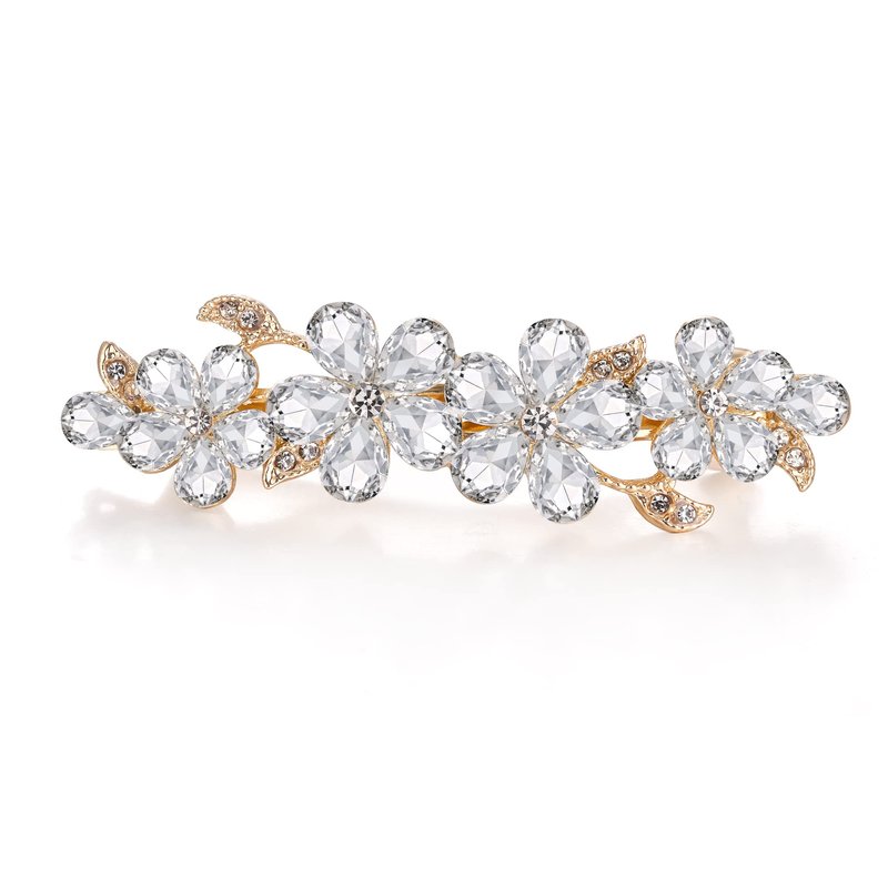 EVER FAITH Women's Austrian Crystal Hair Barrette Clip, Art Deco Plum Blossom Flower Teardrop Hair Clasps Accessorie Clear Gold-Tone