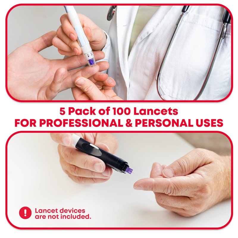 - 5 PACKS OF 100 LANCETS - This box contains 5-100 count, re-closeable packs of blood glucose lancets.