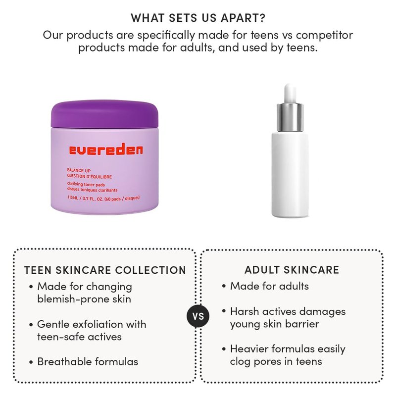 Evereden Balance Up Toner Pads for Face - Clean and Vegan Pre-Teen Water-Based Face Toner Pads with Green Tea, Chamomile, and White Tea For Oily and Pimple-Prone Skin - Balanced Skin & Clog-Free Pores