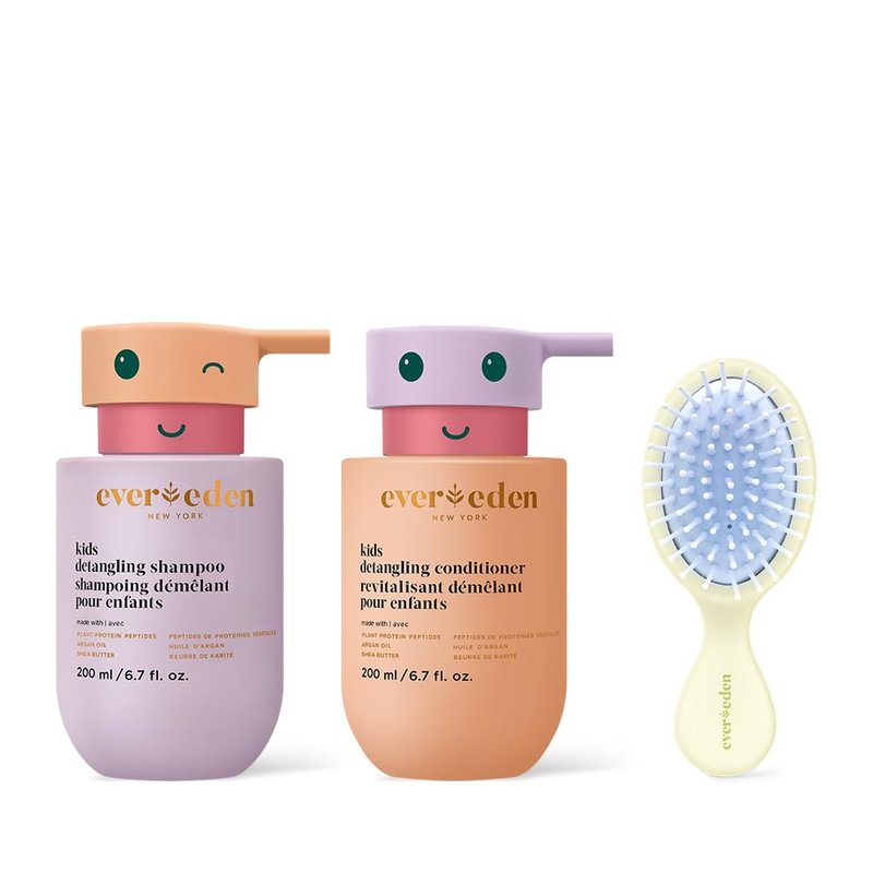 Meet our new kids haircare collection: vegan, clean, and works like a dream, developed to meet children's specific hair and scalp needs. Carefully formulated with plant protein peptides and argan oil, this powerful duo strengthens, repairs, and improves manageability for all hair types. Kids Detangling Shampoo gently cleanses, nourishes, and smooths hair, while Kids Detangling Conditioner deeply hydrates, adds slip to detangle stubborn knots, and prevents frizz. Formulated for children ages 3+, but can be used by the whole family. Gluten-free.
