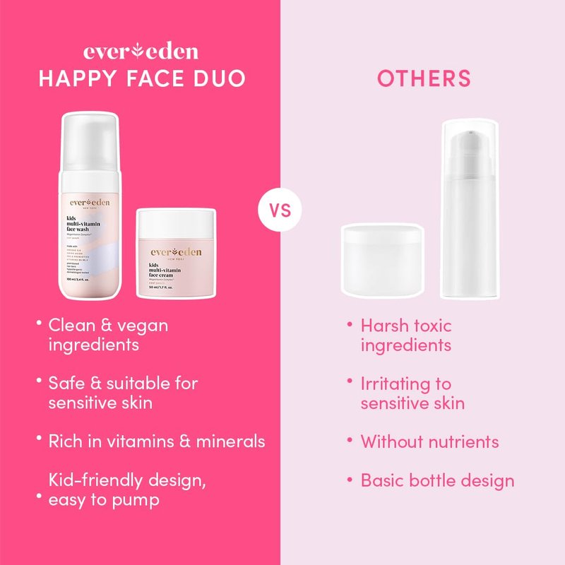 Evereden Kids Happy Face Duo (Cool Peach) - Multi-Vitamin Kids Face Wash & Kids Face Cream Set - Clean & Vegan Skin Care for Kids 3+ - Moisturizing, Nourishing, & Protective Kids Skin Care Set