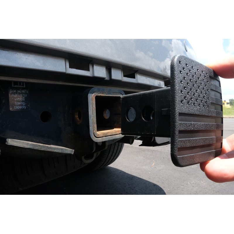 - √ UV resistant. The plug manufactured from durable automotive black rubber. No pin or clip required to hold in place, Installs in Seconds. Simply push it right on your hitch and you are ready to go!