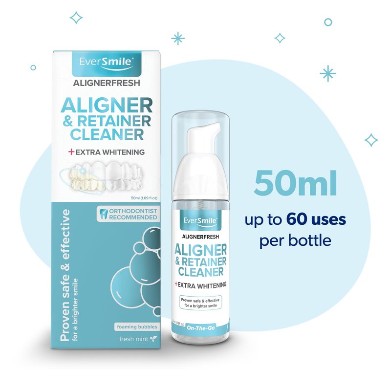 - The Original Wearable Aligner Cleaner: EverSmile AlignerFresh Extra Whitening conveniently works under aligner buttons and attachments. Simply add the aligner cleaning foam to your trays, pop them in your mouth, and go on with your day — no brushing, rinsing or soaking necessary. Getting an orthodontist-recommended clean is easier than ever!