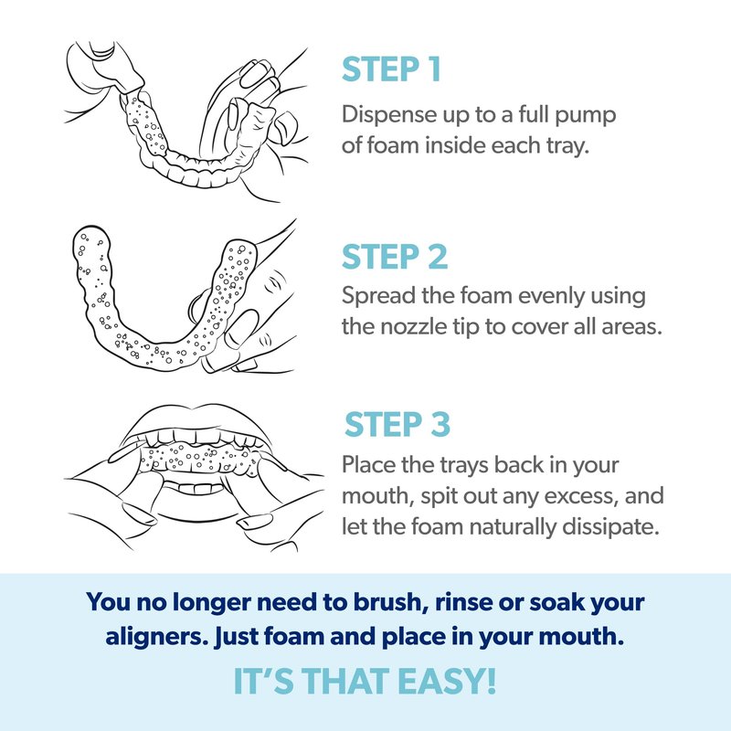 - Kills Bacteria, Freshens Breath, and Cleans Your Entire Mouth: The great-tasting minty formula kills 99.999% of the harmful bacteria in your aligners and mouth that cause bad breath and tooth decay, leaving you with fresher breath and a more confident smile. Foaming bubbles expand into hard-to-reach places giving you a deep and thorough clean.