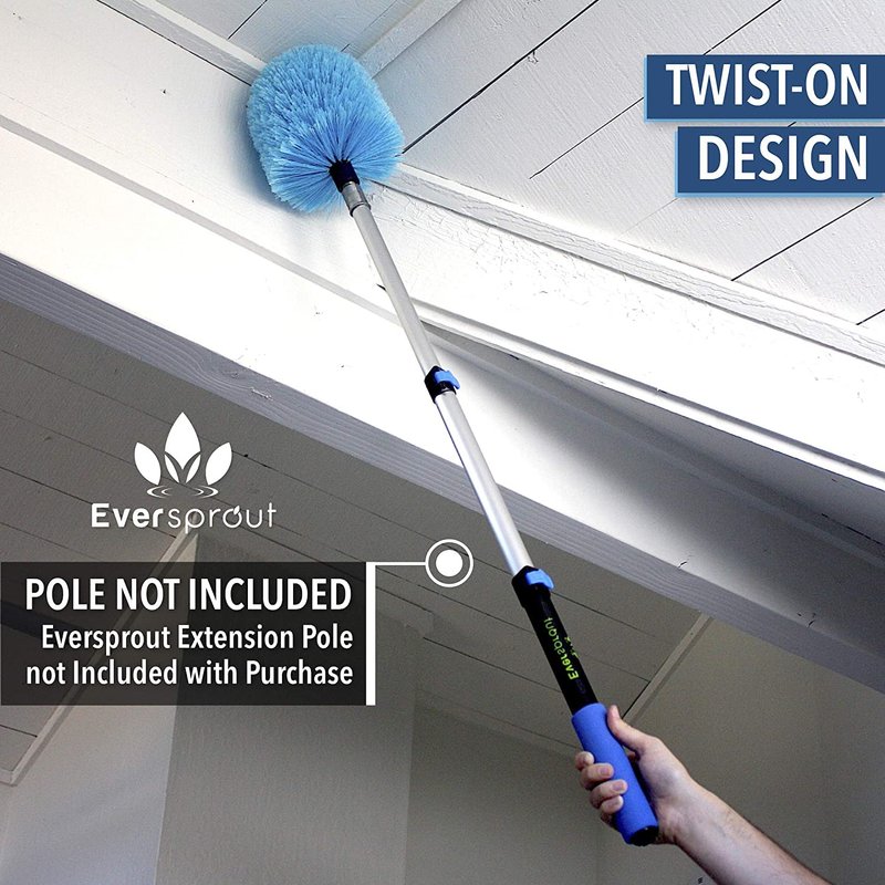 - TWISTS ONTO ANY UNIVERSAL POLE, GIVING YOU EXTRA REACH – The Cobweb Duster twists onto all Eversprout Extension Poles or any pole with Universal/Standard US Threading, or ¾” Threading.