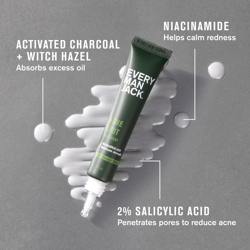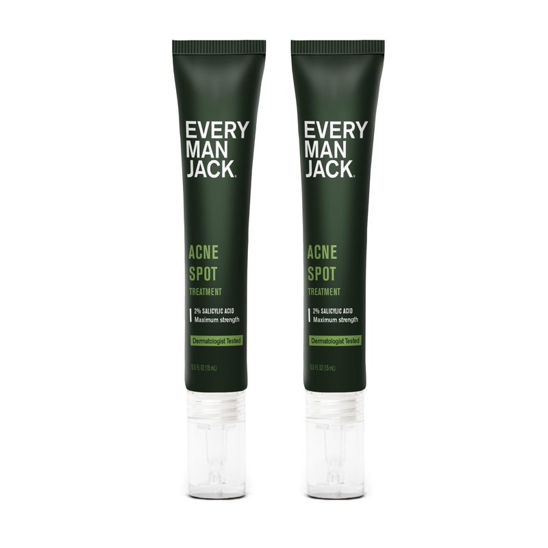 Every Man Jack Acne Spot Treatment - Maximum Strength, Fast Absorbing Skin Clearing Serum - 2% Salicylic Acid, Activated Charcoal, Niacinamide - Target Acne & Blemishes, Reduce Redness - 0.5oz 2 Pack