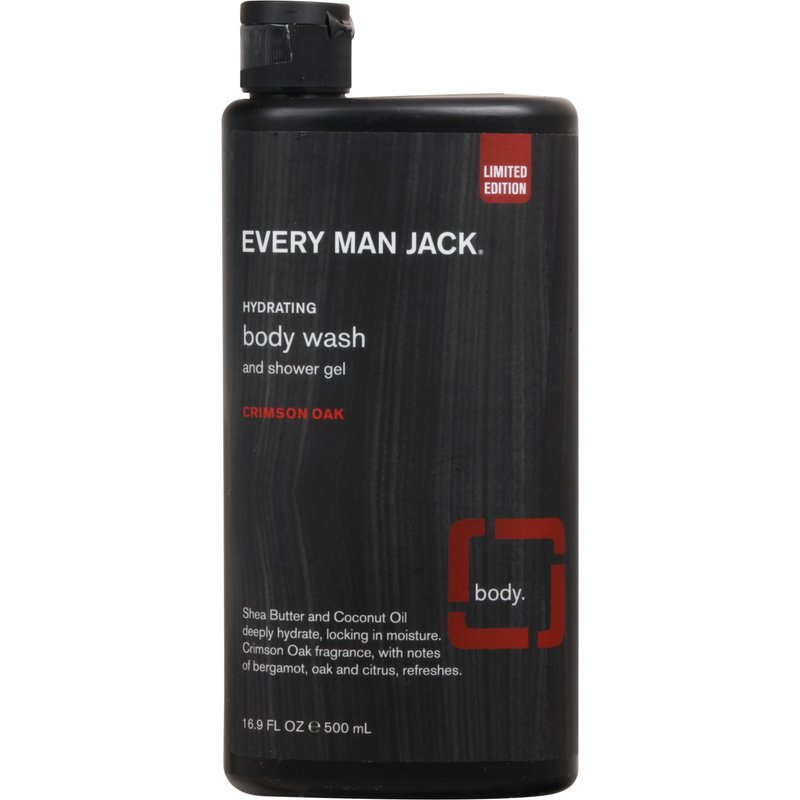 Limited Edition Gluten free. Vegan. Shea butter and coconut oil deeply hydrate, locking in moisture, crimson oak fragrance, with notes of bergamot, oak and citrus, refreshes. Clean: Deep cleans to remove dirt and grime without over-drying. Coconut-derived surfactants cleanse, essential oils of citrus and cardamom with notes of bergamot refresh, and hydrating shea butter helps moisturize skin. Wash: Rinse body. Work into a rich lather, apply and rinse. Naturally: We strive to use as many naturally derived and plant-based ingredients as possible, while still delivering exceptional performance. No parabens. No phthalates. No dyes. And never tested on animals. Naturally derived. www.everymanjack.com. Follow us (at)everymanjack. For more information, visit everymanjack.com. Bottle made from 50% post consumer recycled (PCR) plastic. Cruelty free. Please recycle. Made in the USA from domestic and imported ingredients and components.