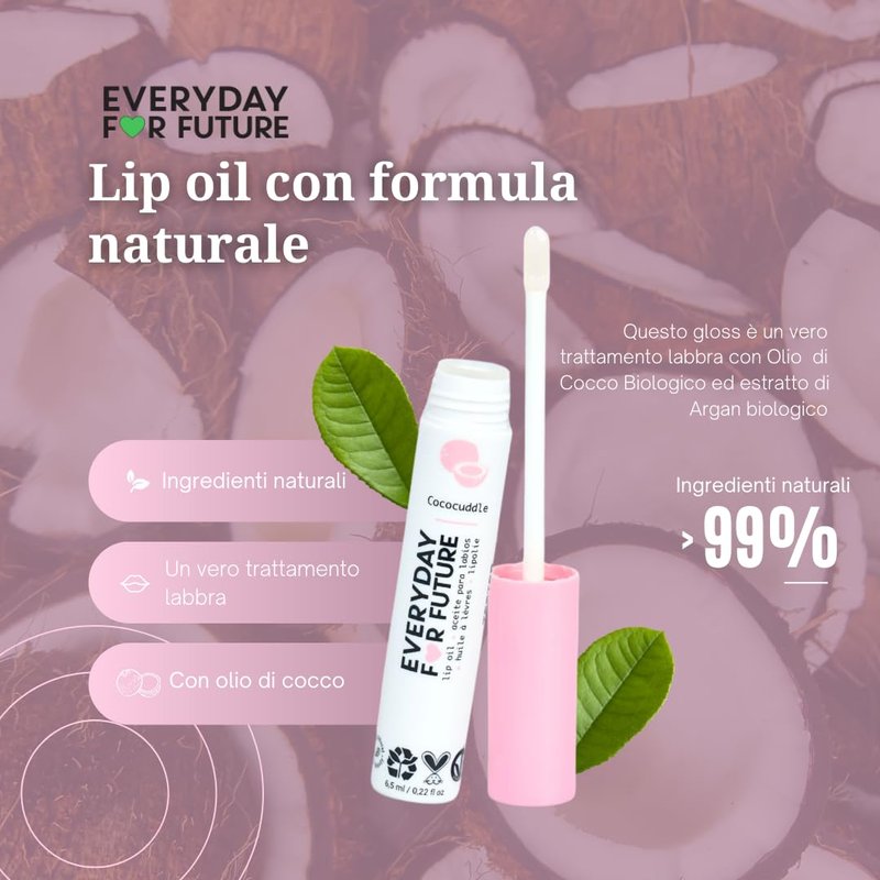 Infused with the goodness of Coconut Oil and Organic Argan extract, this light, non-greasy texture lip oil is designed to provide the ultimate benefits to your lips. Packed with rich fatty acids and antioxidants, the Coconut Oil in this lip oil works wonders in nourishing and protecting your lips, while the Organic Argan extract, rich in Vitamin E, is known for its moisturizing and healing properties. You get all the plump and shine of a lip gloss, without the stickiness! Our Coconut Lip Oils come in 2 gorgeous shades: Piña Colada: Clear shade perfect for everyday use Coco Loco: Pink shade with pearls to add a subtle touch of color and shimmer to lips. Our formula is made with 99% natural ingredients, ensuring that you get only the best for your lips. Plus, it's vegan and cruelty-free, so you can enjoy the goodness of this Lip Oil guilt-free. And we don't stop there - our packaging is sustainable, made of 75% recycled materials, so you can feel good about your purchase knowing that you're making a positive impact on the environment.