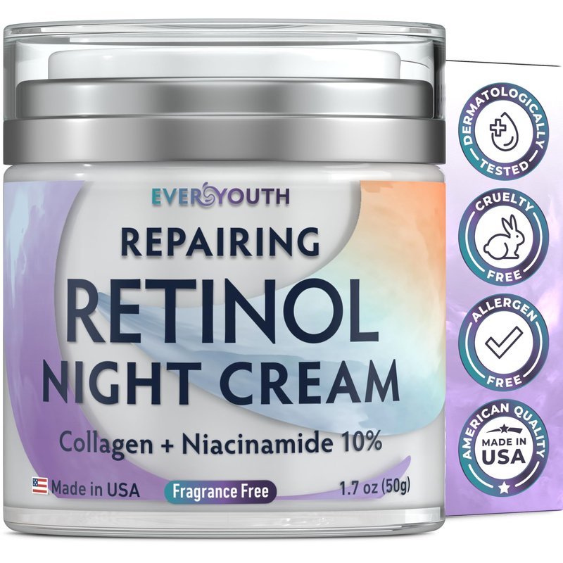 - Night Cream for face and Neck: Introducing Everyouth night cream moisturizer for face - a fragrance-free retinol night cream for overnight revitalization and anti-aging experience. Our night facial moisturizer, enriched with 10% niacinamide, collagen, and retinol, works as you sleep to deeply moisturize and nourish your skin, support skin rejuvenation, and deliver powerful anti-aging effects. Wake up to a visibly refreshed and youthful glow you've been dreaming of.