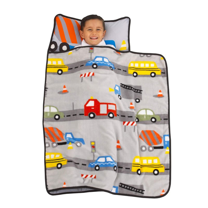 - Includes toddler pillow, quilted nap mat and soft blanket.