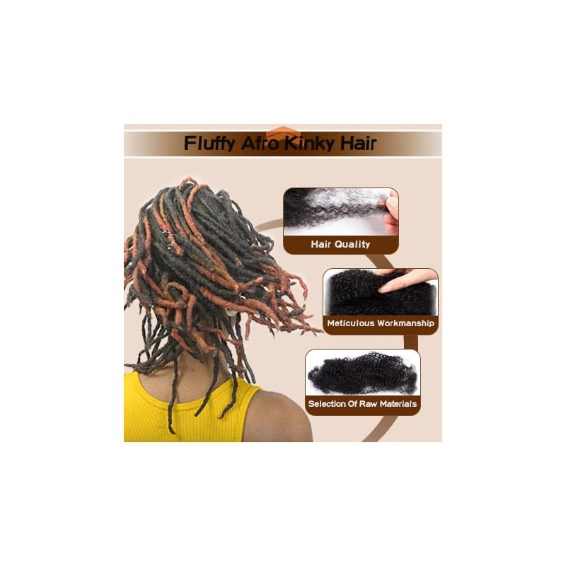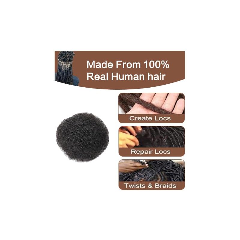 - 【100% Soft human hair】 8 Inch Afro kiny human hair bulk for dreadlocks. Natural look, soft and skin-friendly, Exactly match your own hair's texture. Can be bleached and dyed.
