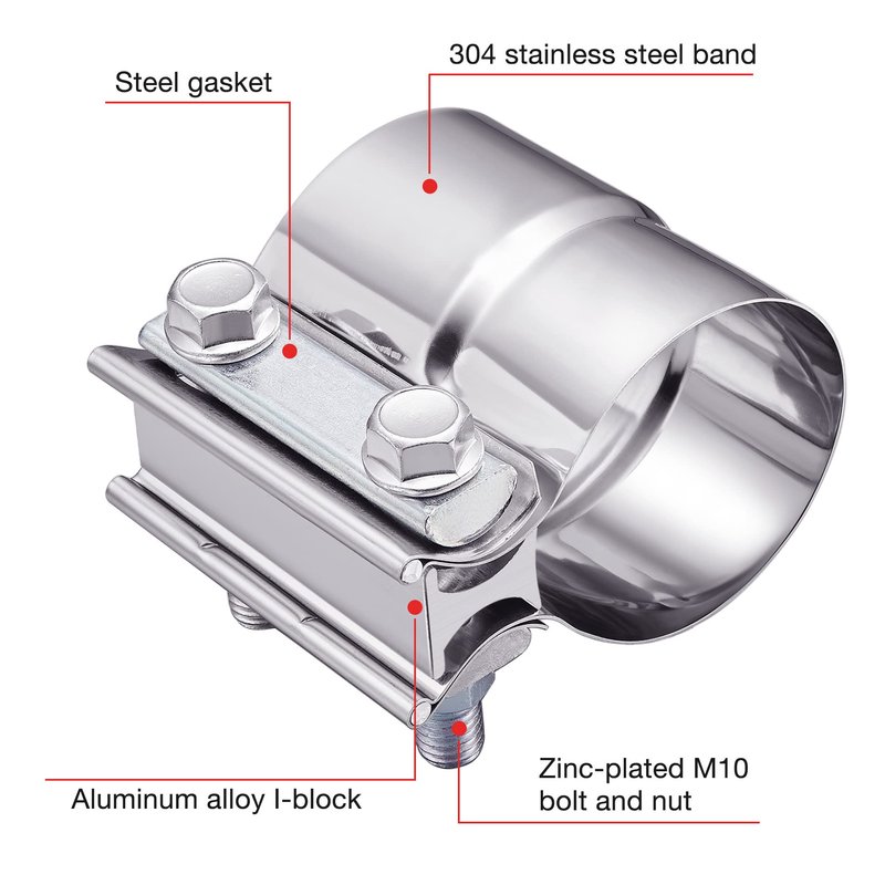 - Material: 304 stainless steel band, zinc-plated M10 bolt and nut, steel gasket, aluminum alloy I-block.