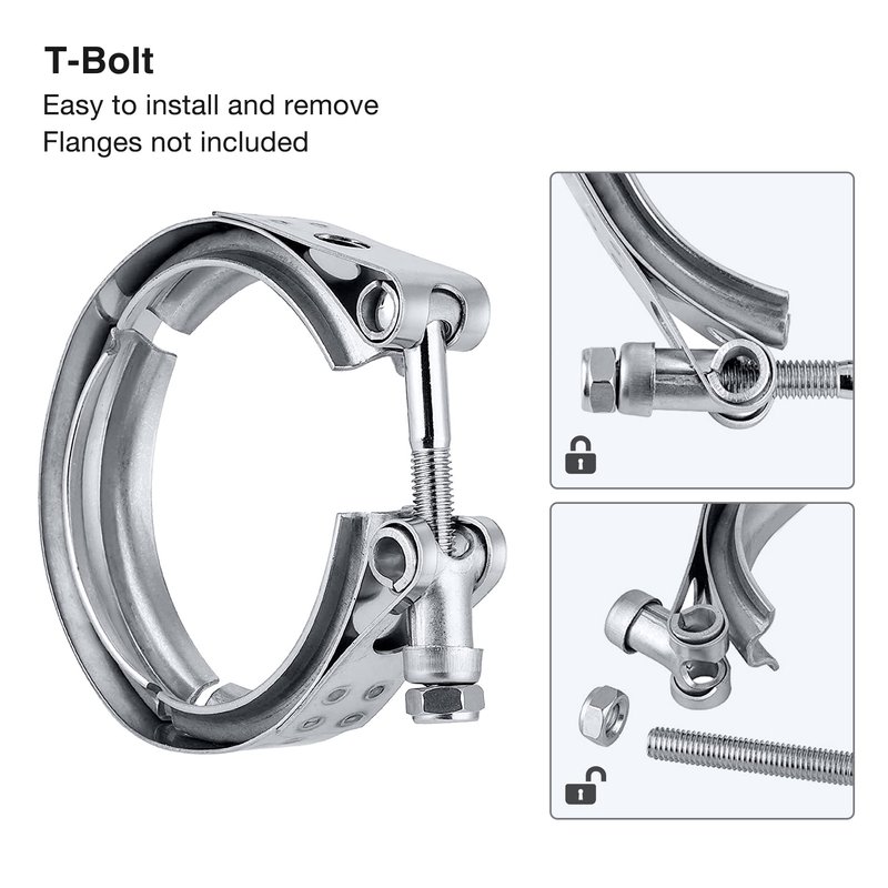 - [Advantage] V-band clamp is easy to install and remove perfect for applications requiring frequent removals and provide a great seal with even pressure at the flange.