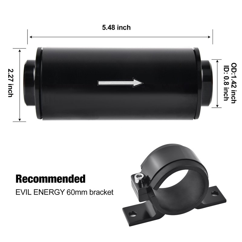 EVIL ENERGY is our brand, we're a direct and professional manufaturer, one of greatest manufacturer and exporter in Tuning parts include intake system, exhaust system, engine system, cooling system, interior&exterior parts. Inline fuel filter can be used to filter gasoline, diesel, and E85,etc. Capturing particles of contaminants. Protects the vehicle's fuel system, improves engine performance, saves fuel and effectively prevents clogging.