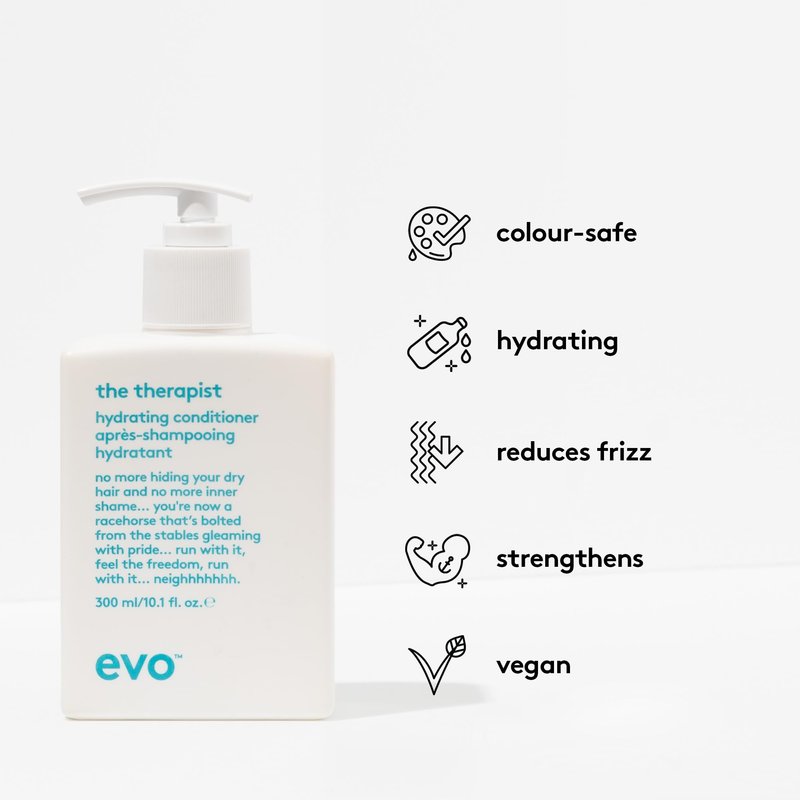 EVO The Therapist Hydrating Conditioner - Hydrates, Strengthen and Softens Whilst Improving Shine - Protects Colour Treated Dry Hair, Helps to Detangle - 300ml / 10.1fl.oz