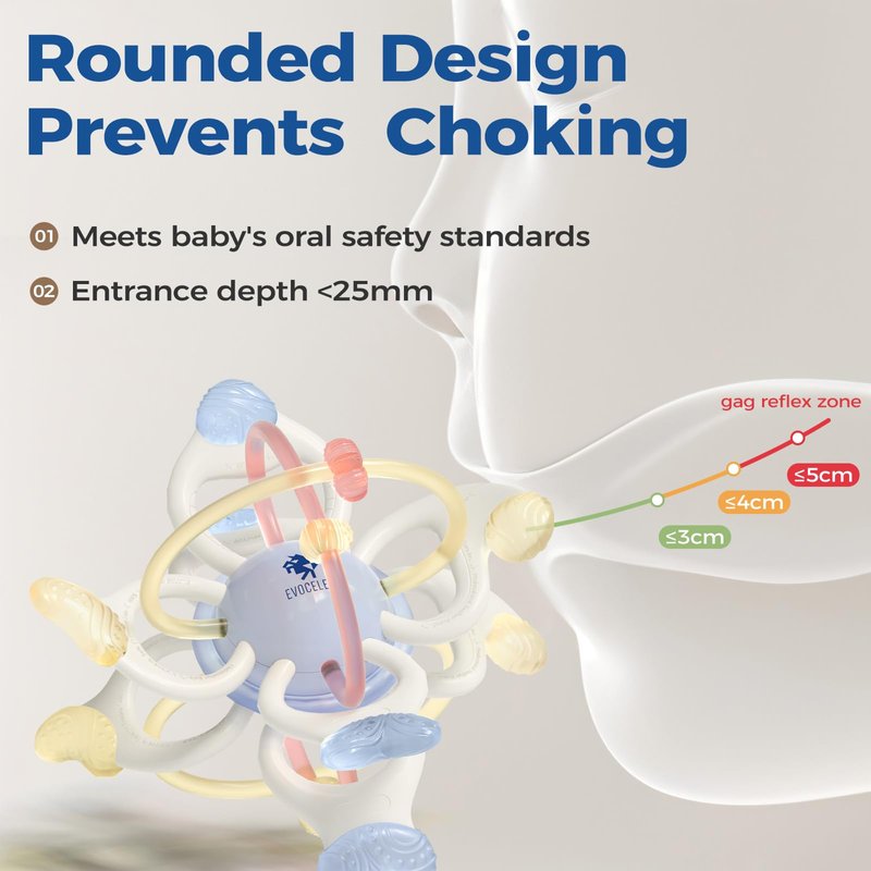 - [0 Harm Pacifier-Grade Silicone Baby Teething Toys]: Our Evoceler Teething Toys complies with all CPSIA safety regulations. Crafted from premium, flexible, pacifier-grade silicone, not only it's gentle on tender gums and free of BPA, PVC, Latex, Metals, Phthalates, and Rust, ensuring non-toxic and safe contact for your baby's health. Rigorous testing ensures no removable or loose parts pose choking hazards