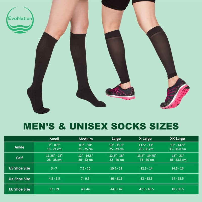 Sometimes a little pressure is a very good thing. EvoNation has put that knowledge to use in the design of our advanced graduated compression socks. EvoNation uses a computer-controlled manufacturing process to ensure your compression socks provide the perfect fit and apply a consistent level of compression right where you need it most. Our proprietary true graduated compression technology is scientifically engineered to offer better health, comfort, endurance, and safety. True graduated compression applies the greatest amount of pressure at the ankle and gradually decreases as it moves up the leg to assist with the natural process of circulation. This technology helps the veins to contract, moving blood back up to the heart for another refreshing round of oxygenation and recirculation. In other words, EvoNation compression puts more “go” into the “flow.” Our deep research and cutting-edge technology make all the difference in providing you with optimal comfort, health, and endurance benefits. Our compressive knit patterning has been mathematically engineered to exert just the right amount of pressure at each specific position of the sock to offer the greatest compression benefits. The advanced technology and unique product features are designed to offer optimal health benefits and comfort for your lifestyle. Not only do EvoNation products feel great, but they look great too!