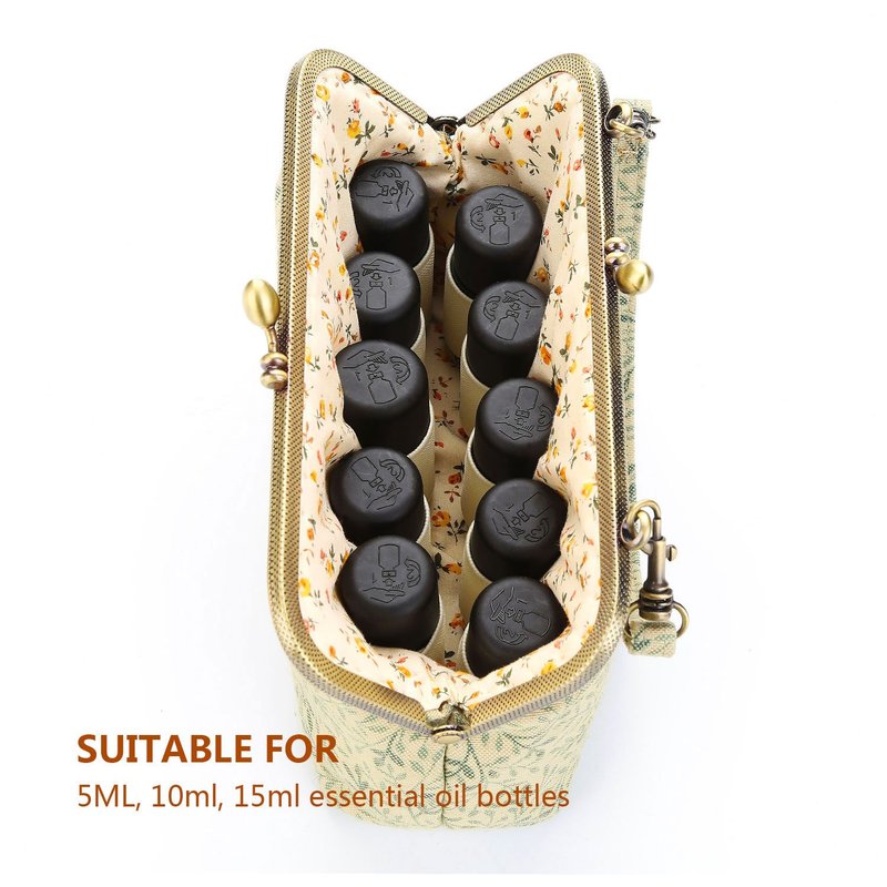 - HIGH-QUALITY MATERIALS: Adopts copper metal clip that has a unique glossy finish and excellent flexibility, which makes it sturdy and durable. The linen and cotton fabric features breathable, eco-friendly and safe properties. It is made of three layers of fabric and provides excellent protection for expensive essential oils, lipsticks, blushes, eyeshadows, etc.and protects it from impact, direct sunlight and temperature changes.