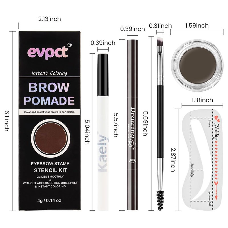 - ❤【How To Use 】Start off with a clean brow area and dip brush into brow pomade. Remember less is more to begin with.Carefully trace bottom of natural brow line to achieve desired shape and length,Choose the Eyebrow Stencils for assistance.You may dip your brush in pomade once more and begin with light strokes at the beginning of your brow to create the front part of your brow and continue until end of brow is reached.For a sharper brow, at arch of brow and with minimal product sharpen the tail en