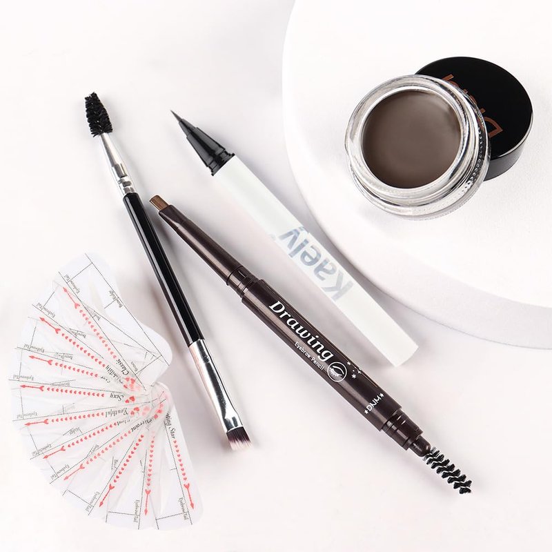 - ❤【Eyebrow Pencil Eyeliner Stencil Kit】Included Eyebrow Pencil, Liquid Eyeliner, Eyebrow Pomade, 10 Eyebrow Stencils and Dual-ended Eyebrow Brush.Instantly outlines, defines & fills in your brows no matter how much eyebrow hair you have,3 minute to create flawless, symmetrical brow!