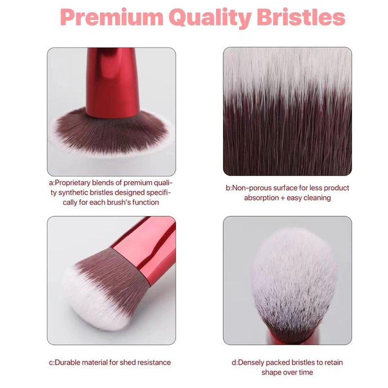 - [Dense Hair And Don't Waste Makeup] --We redesigned the contour brush bristles surface to make them more scientific and dense. The blending brush for makeup are smooth and delicate, with long peaks, dense foundation brush so the bristles don't irritate the skin, and they blend well. Foundation brush for liquid makeup with good quality synthetic hair is not easy to break, there will be no hair shedding and can be used many times.