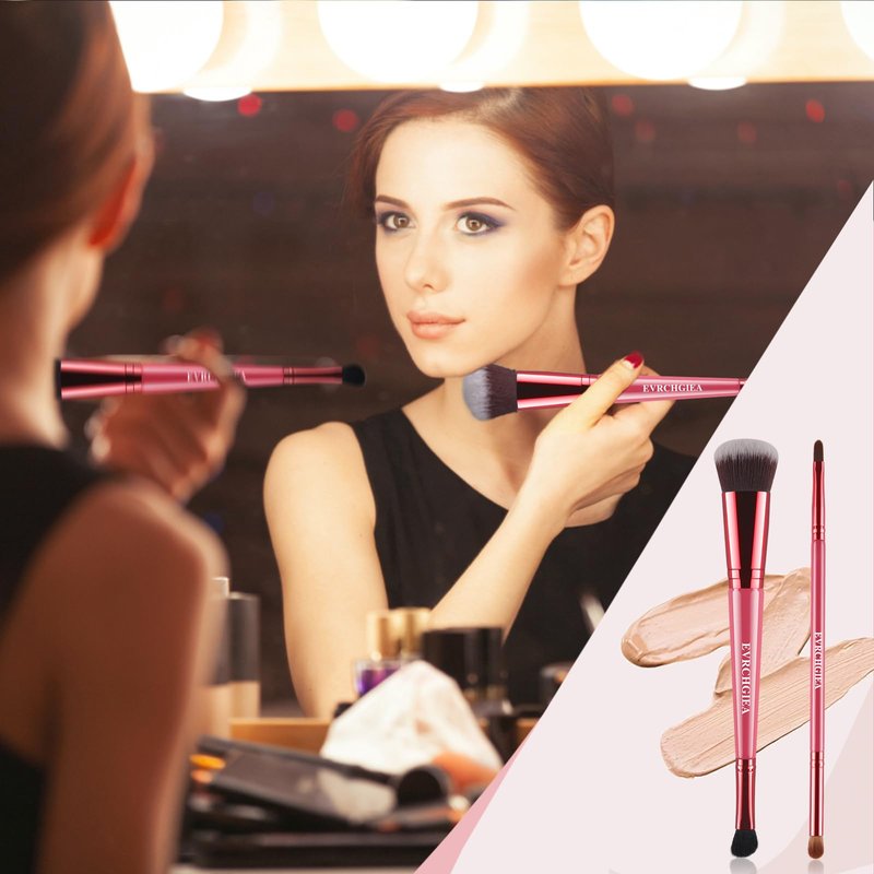 - [Complexion Perfection Foundation Contour Brush Set]--EVRCHGIEA 2pcs Blending Contour Brush for Makeup designed with double sided makeup brush, One end angled nose shadow contour brush, and the other end makeup foundation brush for cream. Another concealer blending brush blends your favorite concealer and blender brush used for other part of your face. Double-sided foundation brush for liquid makeup portable for travel.