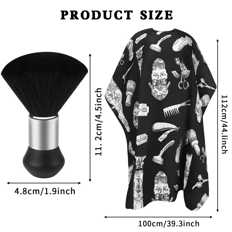 - Barber Cape Set: A waterproof printing hair cutting cape and A barber neck duster.