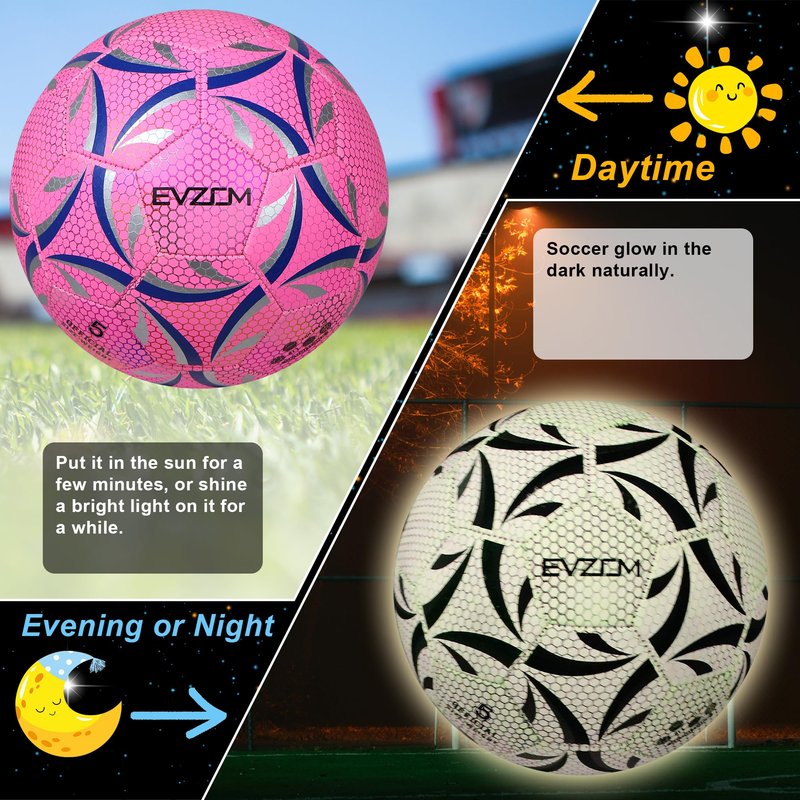 The surface of the Soccer ball is made of reflective material, which will emit a green light in the dark after being irradiated by sunlight or strong light. When you play it at night, it looks very cool.