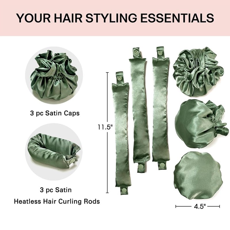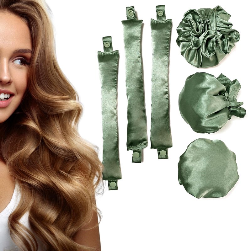 EwiutoijngiQanNew Satin Heatless Hair Curler,Hair Rollers for Heatless Curls with Hair Caps,Soft Heatless Curling Rod Headband for All Hair Types,No Heat Curling to Sleep in Overnight (4-Olive green)