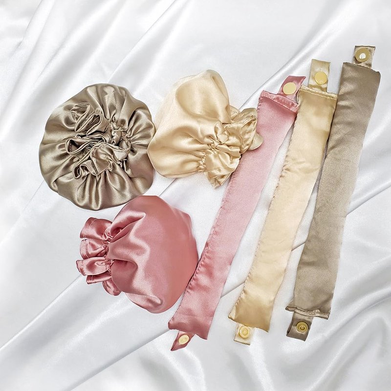 - 【NO MORE HEAT DAMAGE】Avoid the heat damage with this perfect alternative to traditional hot rollers hair curlers, Prevents hair breakage and damage, Does not interfere with sleep while wearing, This set includes a curling rod and one satin sleep scrunchies, all covered in high-quality, silky satin fabric.