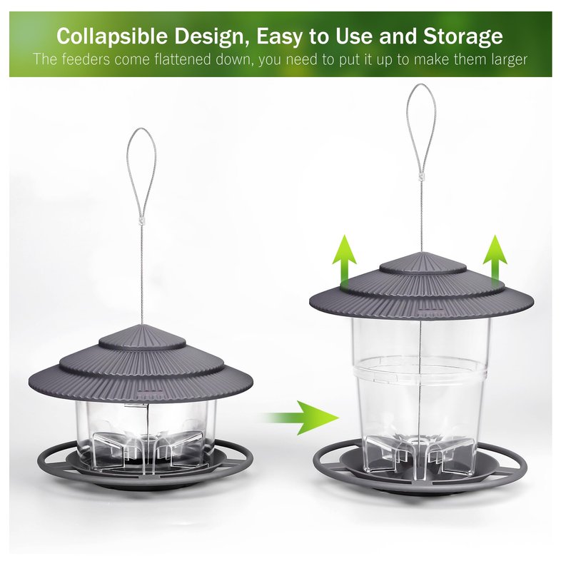- Easy to Clean: The wild bird feeder with a wide mouth is easy to clean and can be retracted, reducing the height of the feeder, making the bottom part easier to clean.