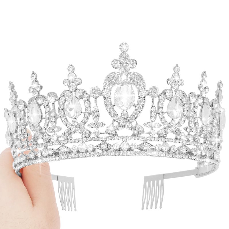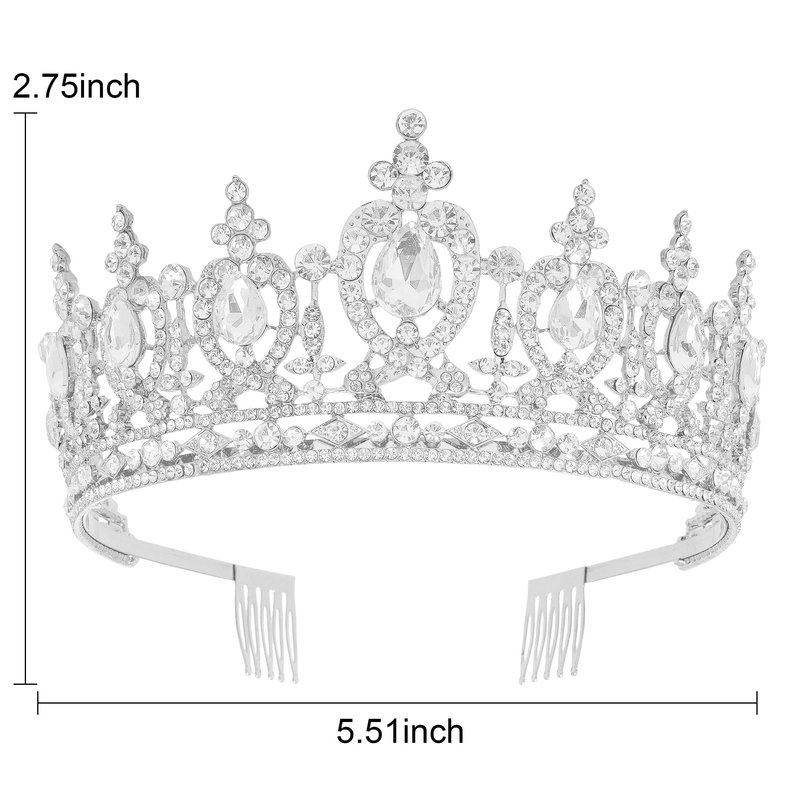 - 1.Glamorous Sparkle, Effortless Elegance: This premium crown, measuring 5.51 inches in length and 2.75 inches in height, sparkles with dazzling crystals diamonds , transforming you into a radiant queen. Equipped with a convenient comb for easy wearing, it ensures a secure and comfortable fit for any special occasion.