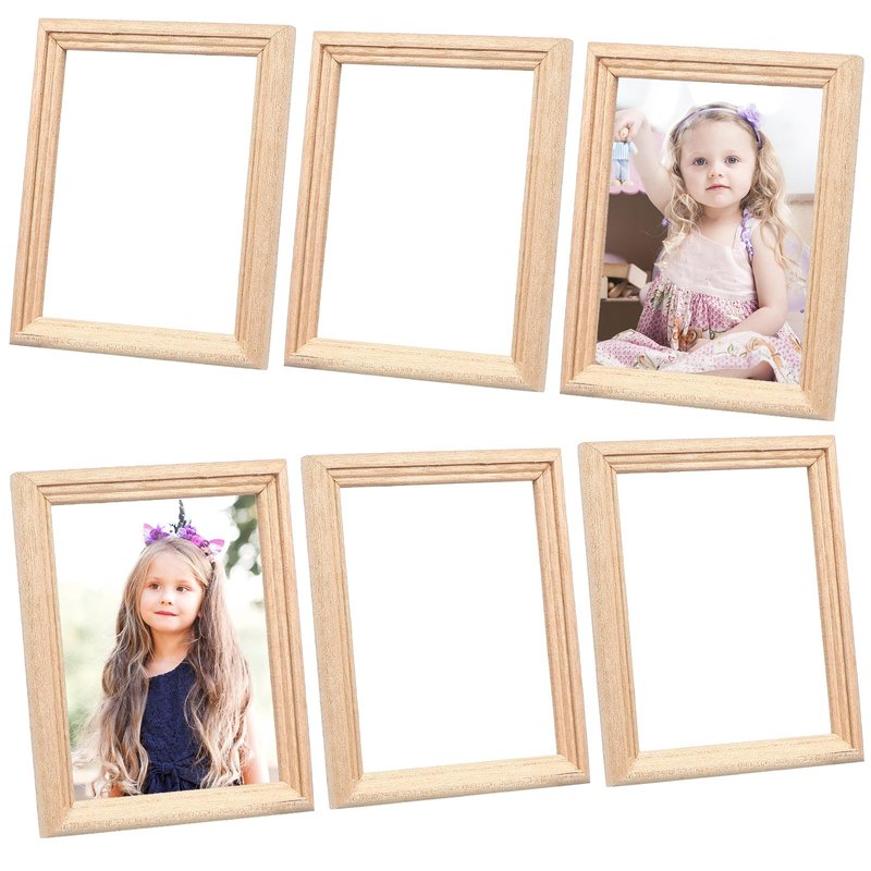 6 x Wood Dollhouse Furniture Unfinished Mini Photo Frame Artificial Miniature Scene Model DIY Wall Art Painting Toys for Nursery Room Photo Props.