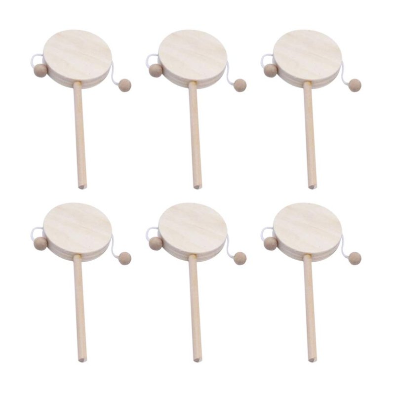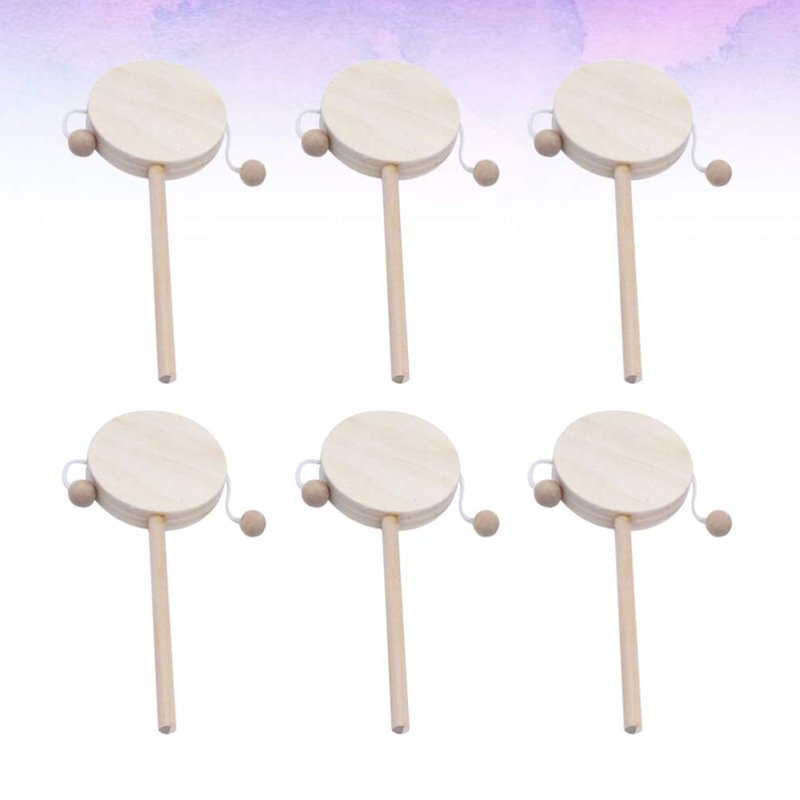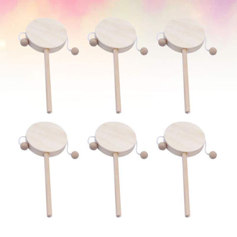 EXCEART Baby Toy 6pcs Wooden Musical Rattle Toy Unfinished Wooden Rattle-Drum Round Corner Handcraft Baby Shaking Drum Early Educational Toy for Kids DIY Painting Drawing Kids Toys