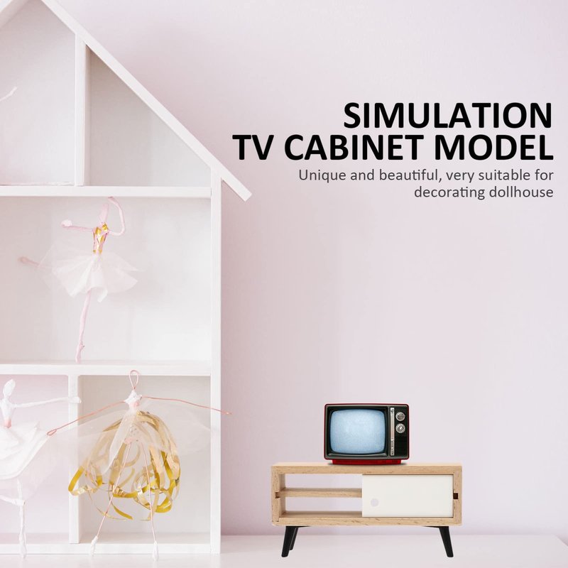 EXCEART Miniature TV Television Dollhouse TV Cabinet Miniature Wooden TV Cabinet Dollhouse TV Stand Stand TV Cabinet